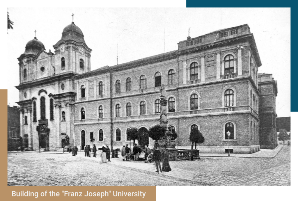 Documents from the time show that on August 25, 1863, the Cluj Law Academy was established as an institution of higher legal education. Legal courses initially lasted three, and then four years, and the language of instruction was Hungarian. In those days and after the formation of Austria-Hungary, the Encyclopedia of Law and State Sciences, Roman Law, Hungarian Criminal Law and Criminal Procedure, Austrian Civil Law, Canon Law or Commercial Law were taught here. In 1872, the Academy was integrated into the structure of the new Franz Joseph University, becoming the Faculty of Law and State Sciences. It had 12 departments, and 173 young people began their legal training. The first rector was elected from among the professors of the Faculty, in the person of Áron Berde, a lecturer at the Department of Finance and National Economy. The construction of the current central headquarters of the University, which also housed the Faculty of Law, was completed in 1902, and that of the Central University Library in 1909 (the latter was built after the model of the University Library in Basel by Budapest architects Korb Flóris and Giergl Kálman).